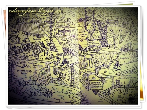 Miałam czasami wrażenie, że w tym przypadku to ilustrator odwala większość roboty - tekstu w książce jest sporo, jednakowoż obrazki bardziej rzucają się w oczy. Są proste, a jednocześnie drobiazgowe, nieskomplikowane, a przy tym pełne zabawnych szczegółów - takie paradoksy. Przewracając kolejną kartkę nie jesteśmy sobie w stanie nawet w przybliżeniu wyobrazić, co nas tam czeka, bo każdy pomysł twórców książki zaskakuje.